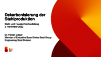 Dekarbonisierung der Stahlproduktion Stahl- und Haustechnikhandelstag 3. November 2022 Dr. Florian Geiger Member of Executive Board Swiss Steel Group Engineering Steel Division Die Swiss Steel…